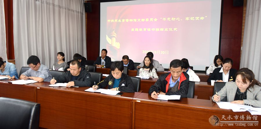 9月20日下午,中共天水市博物館支部委員會“不忘初心、牢記使命”主題教育讀書班在暢和軒舉行結(jié)業(yè)儀式,市博物館黨支部成員、副館長管玉主持儀式并講話,副館長汪保全,各部室負責人及科級干部,全體黨員等50多人參加會議。