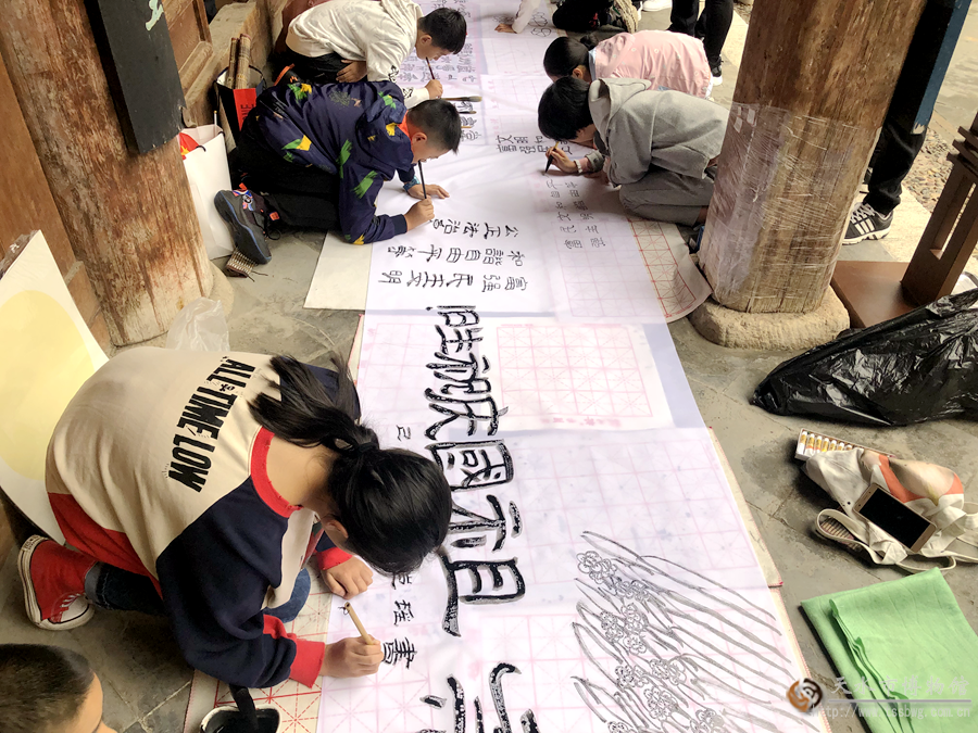 活動當天,社教專員帶領50余名同學及家長參觀了天水民俗博物館慶祝中華人民共和國成立70周年“藏珍·守正——天水市博物館館藏黨和國家領導人題詞及社會知名人士書法展”后,所有學生和家長排好隊形,手拿小國旗合唱《中華人民共和國國歌》。接下來開始了“祝福中國,手繪長卷”主題繪畫活動,在社教專員的協助下,孩子們在長卷兩側,或坐或跪、或俯或蹲,揮毫潑墨,樂在其中,任畫筆飛舞,任想象馳騁!段液臀业淖鎳贰段覑郾本┨彀查T》等作品隨畫筆起落,色彩斑斕的畫面漸漸呈現在畫卷上,一條條線、一點點墨,閃耀著孩子們創(chuàng)作的靈光,承載著孩子們夢想與希望,充盈著孩子們快樂的童年生活以及對祖國的熱愛之情。