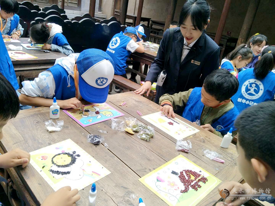 首先社教專員帶領(lǐng)小記者們參觀距今已有 400 多年歷史的古民居建筑群,從建筑、民俗、名著、典故等多方面,讓小記者們了解傳統(tǒng)歷史文化的發(fā)展及演變,隨后,大家又參觀“文物里的中國”精品展覽,通過展出文物及展板內(nèi)容了解中國歷史發(fā)展剪影。天水民俗博物館結(jié)合“文物里的中國”展覽,將青銅鏡銘文“云雨時(shí)節(jié)五谷熟”與此次活動環(huán)節(jié)相結(jié)合,讓大家能夠認(rèn)識了五谷雜糧,鍛煉了動手能力,了解了五谷背后蘊(yùn)含的農(nóng)耕文明。五谷雜糧不僅是我們?nèi)粘I钪斜夭豢缮俚臓I養(yǎng)來源,還有預(yù)防疾病的功效。認(rèn)識完五谷,就進(jìn)入到創(chuàng)作的階段,參與者盡情發(fā)揮想象力,在卡紙上用五彩繽紛的五谷雜糧填充。不一會兒,一副副精致的五谷畫就完成了。