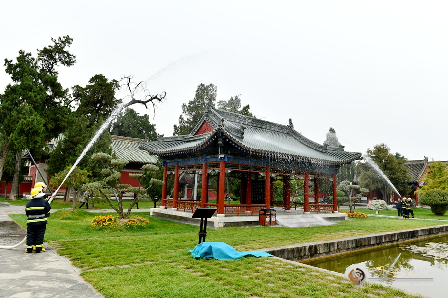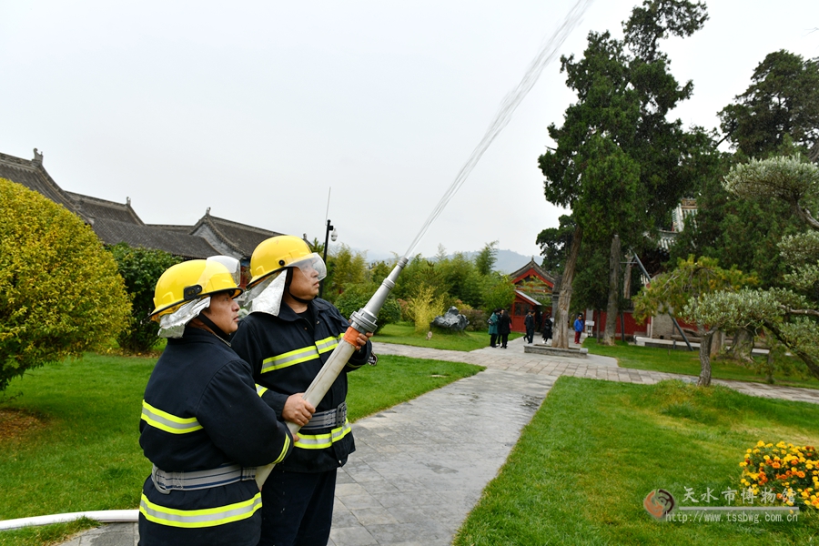 王文平針對文物古建筑實際,結(jié)合火災(zāi)危害、火災(zāi)等級和安全責(zé)任劃分、火災(zāi)撲救和人員逃生等方面進行了深入淺出的講解。培訓(xùn)結(jié)束后,在伏羲廟后院舉行了突發(fā)事件應(yīng)急疏散和滅火演練,進一步加強全館工作人員對消防安全工作重要性的認(rèn)識,提升了消防安全防范意識,增強了組織人員疏散逃生和撲救初期火災(zāi)等應(yīng)變能力,達到了預(yù)期的目的。