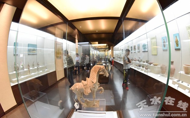 天水市博物館籌建于1958年,1979年恢復(fù)建館,擔(dān)負著天水地域內(nèi)歷史文物、民俗文物的征集、保管修復(fù)、陳列展覽、科學(xué)研究和全國重點文物保護單位天水伏羲廟、天水民俗博物館的保護維修與旅游資源開發(fā)利用以及國家級非物質(zhì)文化遺產(chǎn)——“太昊伏羲祭典”禮儀的保護與傳承等多項工作職能。現(xiàn)有各類藏品14609件套,歷史文物陳列館展覽內(nèi)容以“文化天水”為主線,包括序廳、通史陳列和書畫碑拓、瓷器、彩陶、銅器、宋墓復(fù)原等6個專題陳列,隋貼金彩繪圍屏石榻特展1個,以及2個臨時展廳和1個多媒體演播廳。天水民俗博物館以“秦州人家”為主題,由12個民居院落、78座單體建筑和1處藏寶洞組成,展示了天水地區(qū)民居民俗文化。天水市博物館和天水民俗博物館分別于2009年9月和2011年12月向社會免費開放。