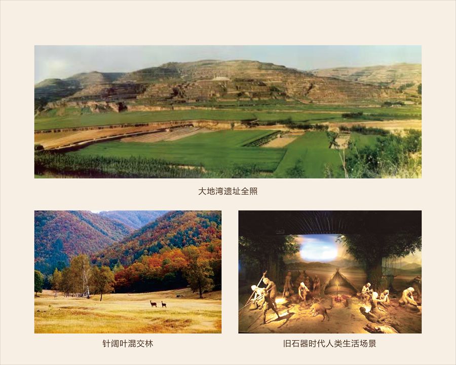大地灣遺址的人類活動(dòng)歷史可以推前至6萬年前。史前時(shí)期,天水地區(qū)屬暖溫帶濕潤區(qū)域向亞熱帶的過渡地帶,當(dāng)?shù)氐闹脖恢饕葬樔~和闊葉混交林為主,分布著茂密的森林和灌木,自然環(huán)境為森林草原型。出土的1.7萬余件動(dòng)物骨骼標(biāo)本證明,該區(qū)域動(dòng)物物種極為豐富,存在著猴、熊、虎、豹、象等動(dòng)物,是各種珍禽異獸出沒的棲息之所。