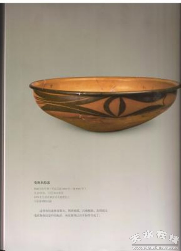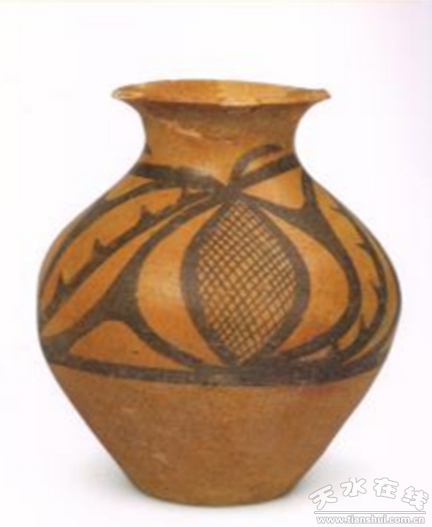 大地灣仰韶文化彩陶是渭河上游地區(qū)典型的新石器時(shí)代彩陶文化。早期彩陶一般繪在缽形器物的沿口外形成一周連續(xù)的彩帶。到二期文化及以后,彩繪部分主要在器物外壁,瓶、壺類器物主要在口部和腹部,紋飾以幾何花紋和動(dòng)物紋為主,器型主要有盆、缽、瓶、壺等,仰韶時(shí)代的彩陶物化了中國五千年前先民們的心靈,折射了那個(gè)時(shí)代的精神。