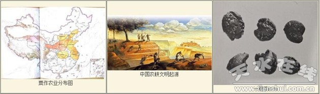 在大地灣一期灰坑中,采集到禾本科的黍和十字花科的油菜籽,是中國同類作物中時(shí)代最早的標(biāo)本之一。出土的形式較為固定的石鏟、石刀、磨石、磨盤等農(nóng)業(yè)生產(chǎn)、加工工具,表明當(dāng)時(shí)原始農(nóng)業(yè)生產(chǎn)的一整套生產(chǎn)加工技術(shù)業(yè)已形成。以大地灣遺址為中心的清水河谷是中國最早的糧食和油料作物的種植地,也是中國旱作農(nóng)業(yè)黍的發(fā)祥地之一。