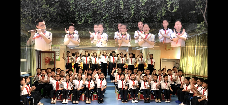 伴隨著《半生雪》的音樂聲,天水市實(shí)驗(yàn)小學(xué)的學(xué)生們以齊唱加手勢舞的方式,用歌聲放飛著學(xué)生繽紛的夢想;用歌聲唱響著少先隊(duì)員們心中的激蕩;用歌聲詮釋著對祖國濃濃的純真情感。