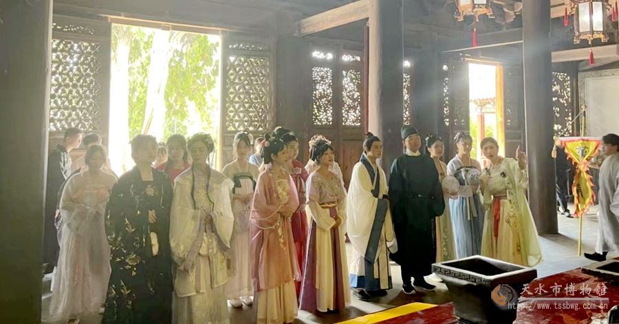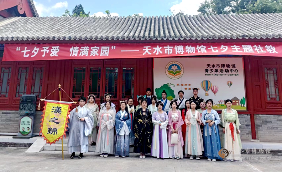 8月4日上午10:00,天水市博物館開展了“七夕予愛,情滿家園”七夕主題社教活動,20余名青年身著漢服參與了此次活動。與此同時(shí),天水市博物館官方抖音號對活動進(jìn)行了全程直播。