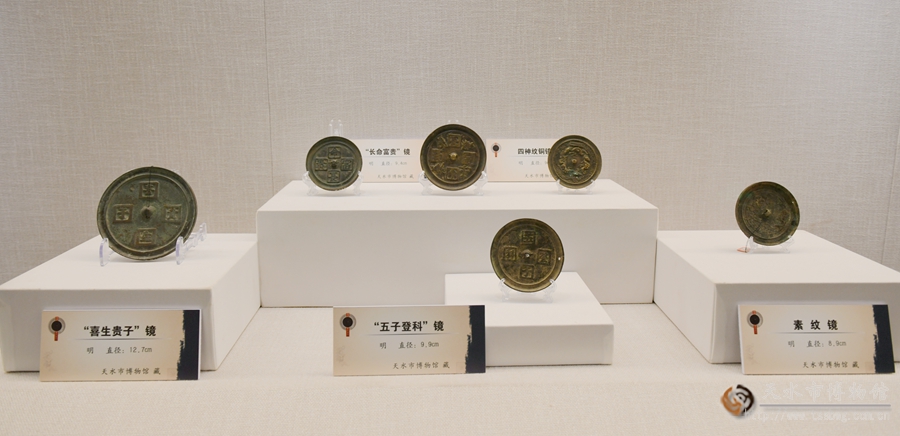 此次展覽精選天水市博物館、秦安縣博物館收藏的100余面珍品銅鏡展出,時間跨度從兩漢到清代,這些銅鏡造型優(yōu)美,紋飾精巧,題材豐富,銘文獨特,制作精湛,基本完整地串聯(lián)起了中國古代銅鏡的發(fā)展脈絡(luò),系統(tǒng)展示了銅鏡的歷史價值、審美價值、科技價值和文化價值。此次展覽以時代為主線,共分為:兩漢鏡鑒、繁華似鏡、光鑒古今、鏡里乾坤四個單元,采取圖版、實物和銘文釋讀等多種形式,集中展示了中國青銅文化的博大精深,表現(xiàn)了銅鏡在各個歷史時代中的文化特征和工藝特點,讓我們共同走進(jìn)銅鏡的世界,體味古人的文明與智慧。