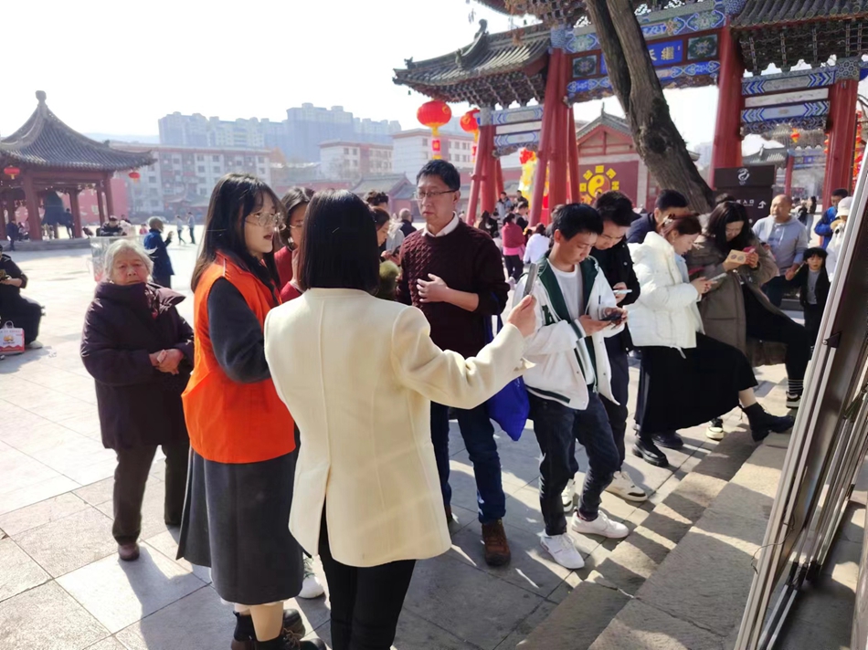 為滿足春節(jié)期間游客祭祖祈福、游覽參觀的需求,天博志愿者以貫徹落實(shí)新時代文明實(shí)踐志愿服務(wù)為理念,節(jié)前開展集中培訓(xùn),在售票、引導(dǎo)、社會教育、研學(xué)活動等工作崗位上提供志愿服務(wù)。春節(jié)期間面對來自五湖四海的游客,志愿者們積極引導(dǎo)游客線上購票,有效緩解游客服務(wù)中心線下購票窗口壓力。游客進(jìn)入景區(qū)后,志愿者也會引導(dǎo)游客按照合理路線進(jìn)行參觀,既保證了完整的游覽體驗(yàn)感,又使景區(qū)、博物館秩序井然。在社教研學(xué)活動中,他們又自覺承擔(dān)起維持課堂秩序、活躍現(xiàn)場氣氛的工作,配合宣教老師圓滿完成每場活動。志愿者們積極、熱情、規(guī)范的服務(wù)身影,成為春節(jié)期間博物館里一道亮麗的風(fēng)景線。