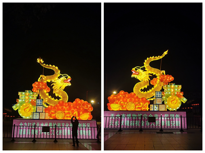 為營造伏羲廟春節(jié)期間濃厚且安全有序的節(jié)日氛圍,天水市博物館在伏羲廟景區(qū)懸掛傳統(tǒng)燈籠1000余個、龍旗數(shù)十面,在伏羲廟廣場制作“龍騰盛世”大型藝術(shù)彩燈兩組,并在伏羲廟前院推出了“喜迎龍門”燈展,后花園布置了“廟趣橫生”燈謎競猜以及泮池的“魚躍龍門”景觀,為廣大市民在春節(jié)期間獻(xiàn)上一份色彩繽紛的燈光盛宴。整個伏羲廟彩燈高掛、鮮花盛開、龍旗飄飄,真正體現(xiàn)了春節(jié)文化活動歡樂、和諧的宗旨,營造了舒適、安全、喜慶的節(jié)日氛圍。