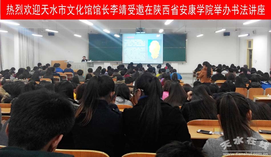 陜西安康學(xué)院是安康市一所省屬多科類全日制普通大學(xué),近年來該院結(jié)合藝術(shù)系學(xué)生專業(yè)特點(diǎn),舉辦各種形式的藝術(shù)講座,大力提升學(xué)生專業(yè)綜合能力和素質(zhì)。3月12日晚8:00,在安康學(xué)院新校區(qū)報(bào)告廳,中國(guó)書法家協(xié)會(huì)會(huì)員、甘肅省書協(xié)理事、天水市書協(xié)副主席、天水市文化館館長(zhǎng)李靖受陜西省安康市群藝館、陜西省安康藝術(shù)學(xué)院邀請(qǐng)舉辦書法講座。