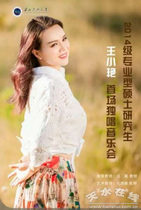 王小艷,女高音,天水市文化館文藝輔導(dǎo)部副主任。2006年畢業(yè)于中央音樂(lè)學(xué)院音樂(lè)教育系,獲學(xué)士學(xué)位。2014年考入西北民族大學(xué)音樂(lè)學(xué)院,師從紅霞教授。2005年12月榮獲加拿大國(guó)際音樂(lè)比賽專(zhuān)業(yè)組優(yōu)秀獎(jiǎng);2007年、2009年榮獲甘肅省第三屆、第四屆群星藝術(shù)節(jié)聲樂(lè)銀獎(jiǎng);2009年6月榮獲第六屆“星星火炬”中國(guó)青少年藝術(shù)英才甘肅賽區(qū)青年組聲樂(lè)金獎(jiǎng);2013年原創(chuàng)聲樂(lè)作品《羲皇故里》榮獲中國(guó)第十屆藝術(shù)節(jié)第16屆“群星獎(jiǎng)”;2014年10月榮獲由中國(guó)文聯(lián)和四川省人民政府主辦的第四屆全國(guó)新農(nóng)村文化藝術(shù)展演“金土地獎(jiǎng)”;2014年12月榮獲甘肅省第三屆聲樂(lè)比賽青年組二等獎(jiǎng)和新創(chuàng)歌曲最佳演唱獎(jiǎng)。