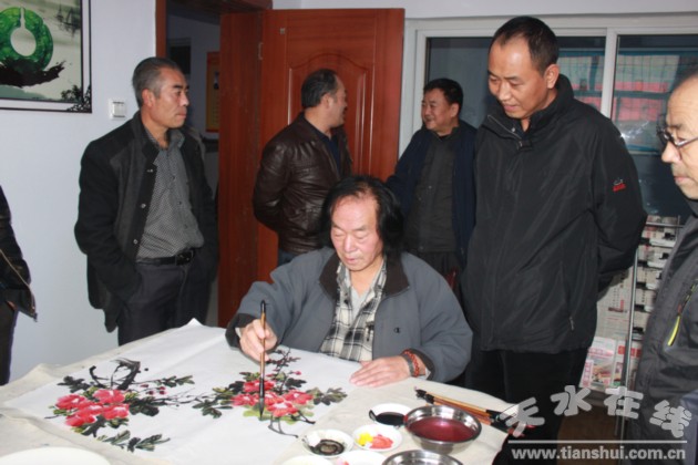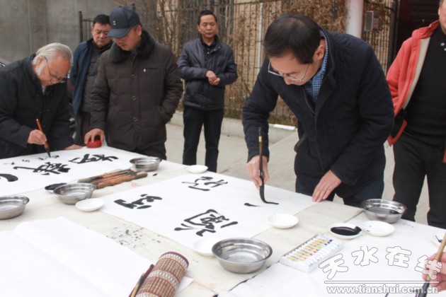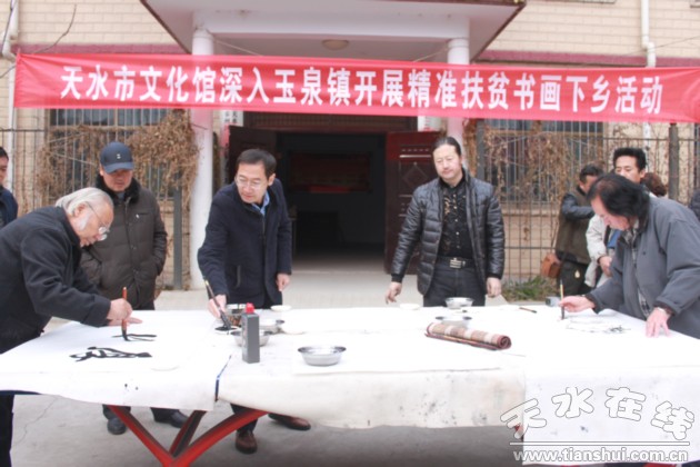 12月4日,天水市文化館組織我市知名書(shū)畫(huà)藝術(shù)家周宇春、雷振揚(yáng)、楊蔭濃、蘇東有以及我館書(shū)畫(huà)創(chuàng)作人員一行12人,由李靖館長(zhǎng)親自帶隊(duì),赴秦州區(qū)玉泉鎮(zhèn)瓦窯坡村開(kāi)展送文化下基層活動(dòng)。