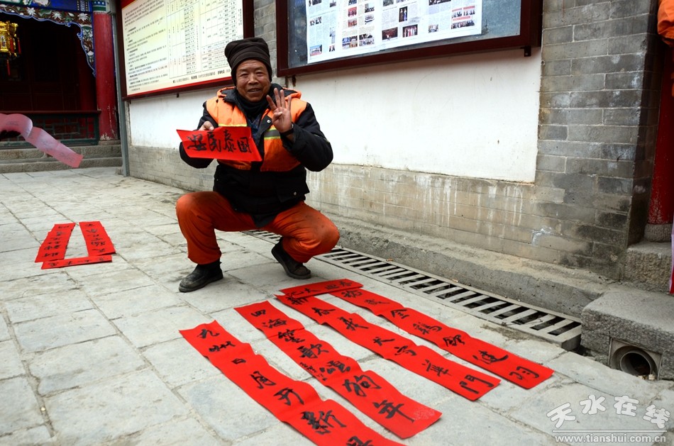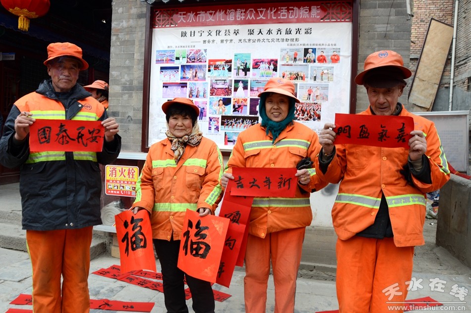 (天水市文化館為秦州區(qū)環(huán)衛(wèi)工人書(shū)寫(xiě)春聯(lián)送祝福) |