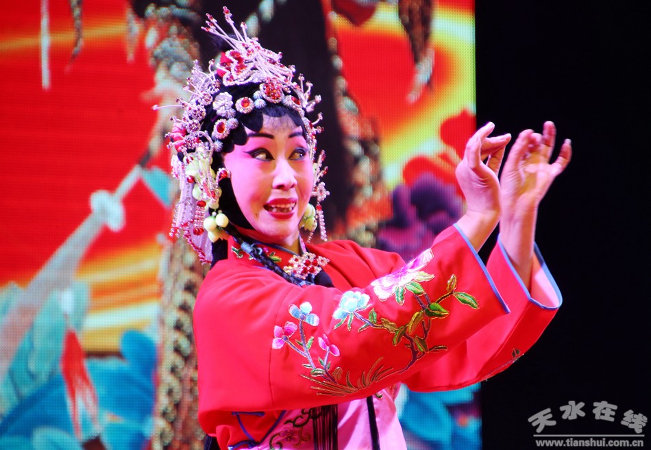 中國第二十八屆戲劇梅花獎獲得者、中國秦腔四小名旦、天水市戲劇家協(xié)會主席、國家一級演員袁丫丫應(yīng)邀出席頒獎典禮,并現(xiàn)場表演了《探窯》選段與《龍鳳呈祥》選段。本屆大賽評委、著名秦腔表演藝術(shù)家、國家二級演員李秋芳、段藝斌、胡雪梅、焦嬋麗、當(dāng)紅小生賀曉蕙以及一、二、三等獎參賽選手王新平、王小梅、李雯、汪洋等為觀眾表演了《教學(xué)》、《貴妃醉酒》、《趙氏孤兒》、《拾玉鐲》、《周仁回府》、《三堂會審》、《楊門女將》、《打金枝》、《激友》等秦腔選段,各界嘉賓及廣大戲迷觀眾報以熱列的掌聲。