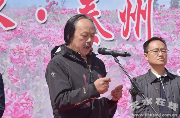 市文化館黨支部紀(jì)檢委員、副館長李博,牡丹鎮(zhèn)黨委書記、鎮(zhèn)政府相關(guān)領(lǐng)導(dǎo)及各界嘉賓近二百余人參加了開幕式。李博同志代表市文化館致辭,宣布“天水市文化館美術(shù)創(chuàng)作寫生基地”正式掛牌成立,并表示要充分發(fā)揮市文化館黨支部在群文工作中的核心作用,依托天水市文化館美術(shù)創(chuàng)作寫生基地這個平臺,將公益性的公共文化活動延伸到鄉(xiāng)鎮(zhèn)中去。今后將邀請更多的書畫名家、攝影家、學(xué)者來寫生基地,帶動牡丹鎮(zhèn)的發(fā)展,讓牡丹鎮(zhèn)的牡丹在各位藝術(shù)家的手里綻放得更加燦爛。