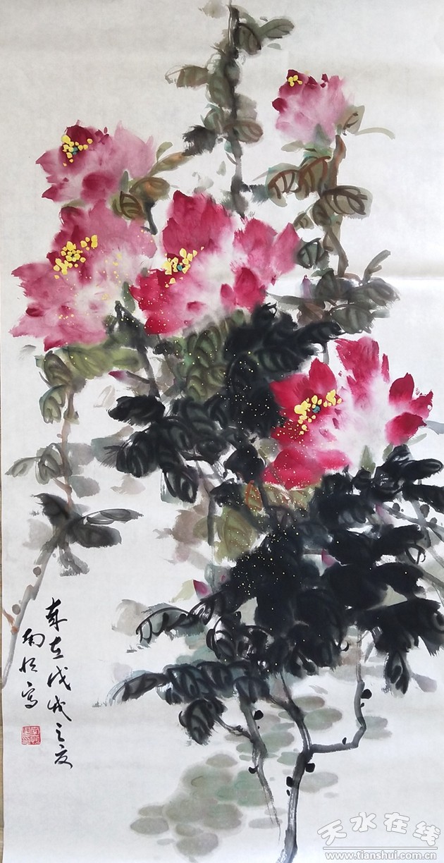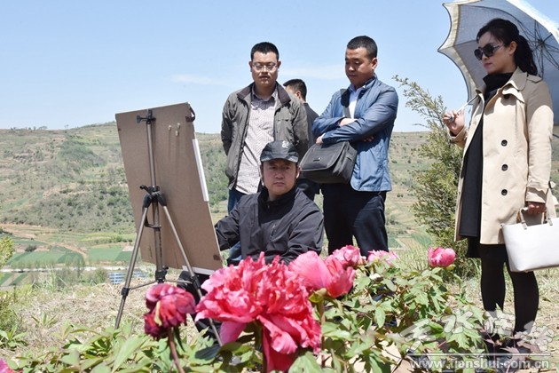 為了實施鄉(xiāng)村振興戰(zhàn)略,推動區(qū)域經(jīng)濟發(fā)展,牡丹鎮(zhèn)積極發(fā)展觀光、旅游、生態(tài)為一體的牡丹種植園產(chǎn)業(yè)。遍布山川隨處可見的牡丹品種繁多,姹紫嫣紅,色彩絢麗,牡丹鎮(zhèn)因牡丹成為名副其實的牡丹鎮(zhèn)。依托牡丹產(chǎn)業(yè)園,牡丹鎮(zhèn)黨委、政府因地制宜,為著力打造特色小鎮(zhèn)而成立了“天水市文化館美術(shù)創(chuàng)作寫生基地”。