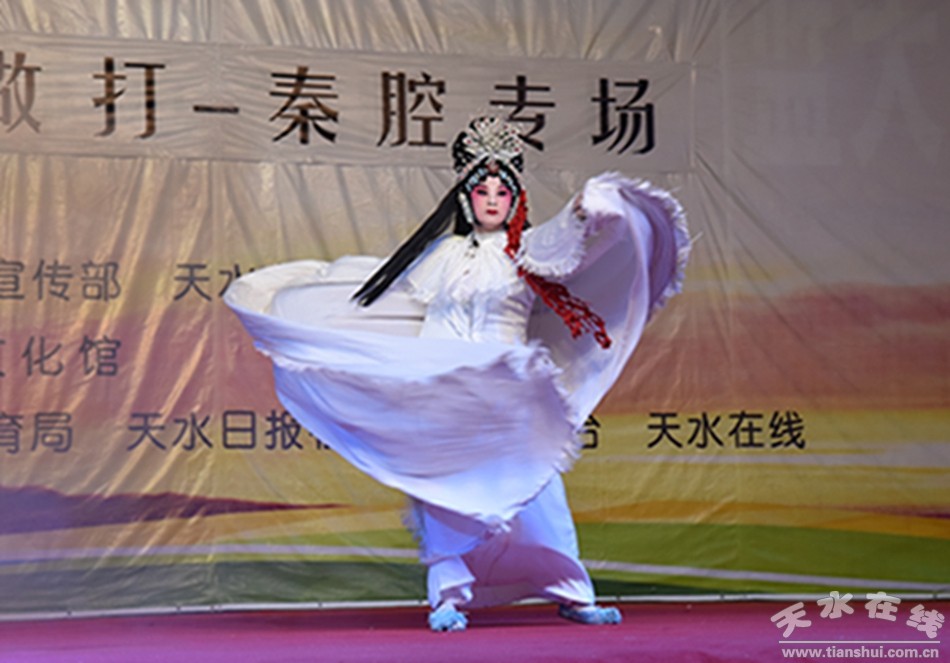 天水市西秦腔研究院、國(guó)家二級(jí)演員田芳表演的秦腔《青絲淚》拉開(kāi)了本次秦腔專場(chǎng)演出的序幕。市西秦腔研究院優(yōu)秀男旦楊江龍表演的《斷橋》、麥積區(qū)國(guó)家三級(jí)演員劉玉敏表演的《三堂會(huì)審》以及我市青年新秀、參加央視星光大道的天水師院大學(xué)生高媛媛表演的《智取威虎山》選段贏得了觀眾熱烈的鼓掌。天水市西秦腔研究院國(guó)家著名三級(jí)演員漆金喜、黃來(lái)旺分別表演的秦腔《白逼宮》、《金沙灘》選段以及我市當(dāng)紅小生賀小慧表演的《五郎出家》,天水市西秦腔研究院、國(guó)家一級(jí)演員常小紅表演的秦腔《鬼怨》選段等相繼精彩亮相。