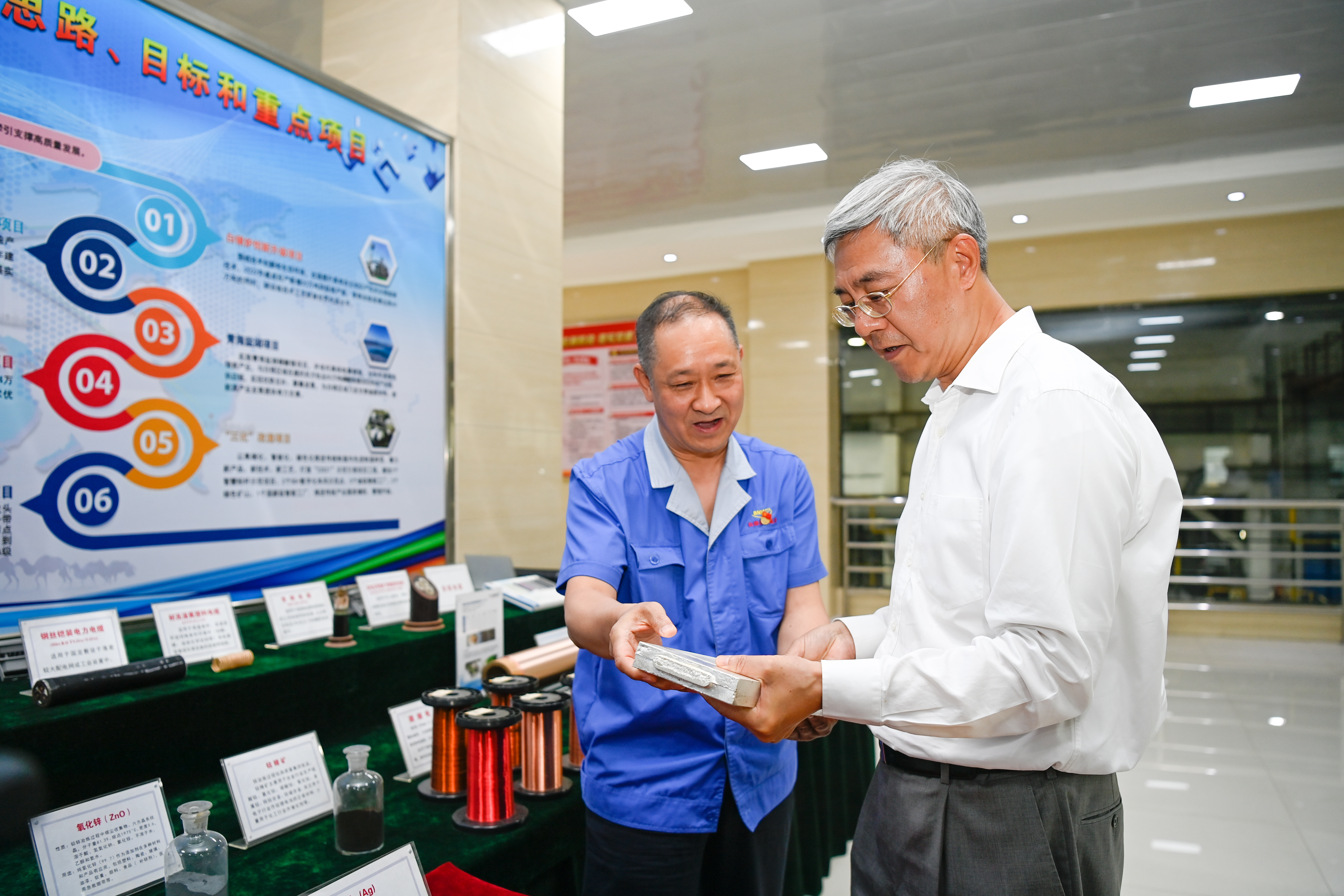 尹弘先后來到甘肅稀土新材料公司、白銀集團(tuán)銅業(yè)公司,詳細(xì)了解企業(yè)科技創(chuàng)新、生產(chǎn)工藝等情況,檢查安全生產(chǎn)、生態(tài)環(huán)保工作。他強(qiáng)調(diào),要強(qiáng)化科技支撐作用,提高自主創(chuàng)新能力,加快傳統(tǒng)產(chǎn)業(yè)高端化、智能化、綠色化改造,做足補(bǔ)鏈延鏈強(qiáng)鏈文章,提高資源精深加工和綜合利用水平,推動(dòng)產(chǎn)業(yè)提質(zhì)增效、做大做強(qiáng)。要樹牢綠水青山就是金山銀山理念,堅(jiān)持生態(tài)優(yōu)先、綠色發(fā)展,壓緊壓實(shí)企業(yè)生態(tài)環(huán)保主體責(zé)任,高標(biāo)準(zhǔn)配套建設(shè)環(huán)保設(shè)施,加強(qiáng)節(jié)能減排、減污降碳,堅(jiān)決守牢生態(tài)環(huán)保底線,實(shí)現(xiàn)經(jīng)濟(jì)效益、社會(huì)效益和生態(tài)效益有機(jī)統(tǒng)一。要把安全生產(chǎn)擺在突出位置,落實(shí)落細(xì)安全管理各項(xiàng)制度措施,提升本質(zhì)安全水平,推動(dòng)企業(yè)持續(xù)健康發(fā)展。