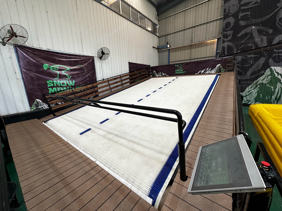 “后來,北京冬奧會申辦成功,我接觸到一些室內(nèi)旱雪項目,而我們恰好有材料、機械設(shè)計的研發(fā)攻關(guān)能力,歷時五年,終于‘磨劍’成功!蓖跞A欽介紹。