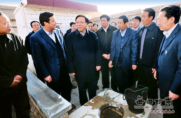 2月27日,省委書(shū)記、省人大常委會(huì)主任陸浩深入定西市考察旱情。這是陸浩在安定區(qū)西鞏驛鎮(zhèn)花溝村農(nóng)民陳剛家中了解旱情及群眾吃水情況。本報(bào)記者 呂建榮 攝