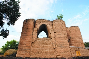 堡墻之上向院中俯看,一米高的衰草被風(fēng)吹成波浪的形狀倒伏,一排顯得低矮但卻整齊的平房明顯的是后人所蓋。