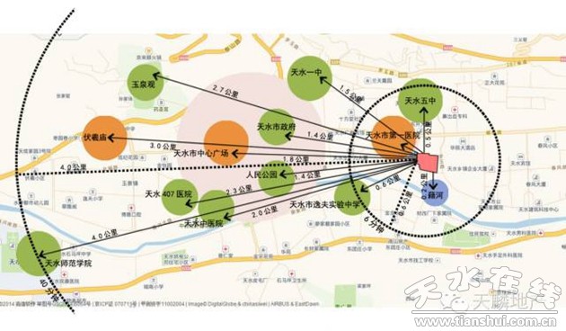 天麟·金水灣項目位于秦州區(qū)東橋頭原花鳥市場舊址,地處天水城市中心東核心區(qū)域。項目北接天水市第一人民醫(yī)院,東鄰即將落成的藉河羅峪大橋貫通南北,重要學區(qū)資源近在咫尺,藉河水穿城而過繞其東去,資源、交通、景觀匯聚于此,呈眾星拱月之勢依河而立。