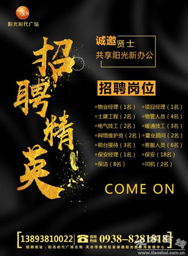 天水陽光時代廣場超甲級寫字樓誠聘精英