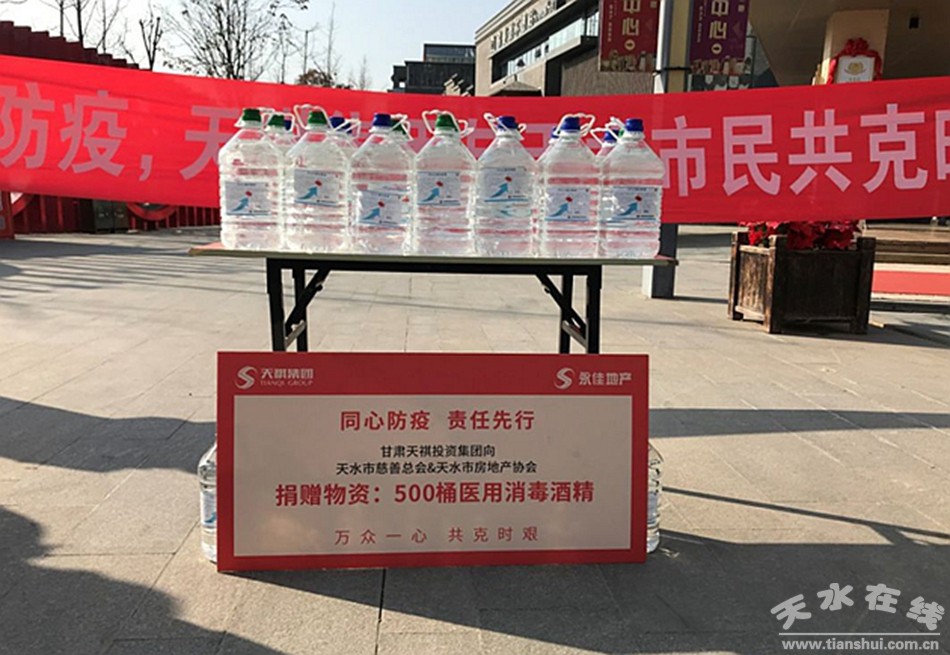 疫情就是命令,防控就是責(zé)任!甘肅天祺投資集團(tuán)切實(shí)踐行企業(yè)社會責(zé)任,全面吹響抗擊疫情的號角,2月4日為天水市募捐500桶醫(yī)用消毒酒精,用于防控防疫工作。