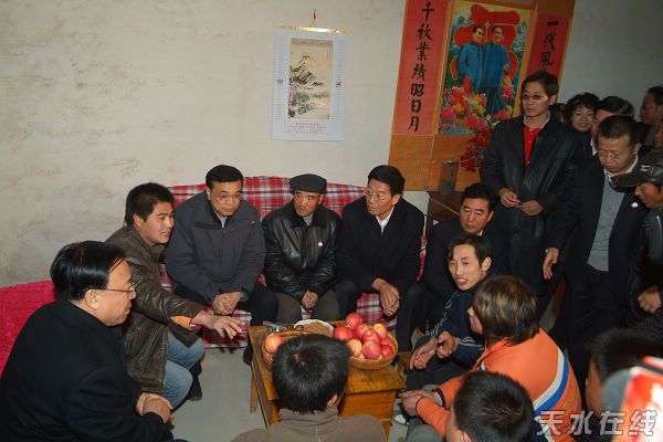 1月15日,中共中央政治局常委、國(guó)務(wù)院副總理李克強(qiáng)深入我省天水市秦州區(qū)中梁鄉(xiāng)兄集村,親切看望慰問(wèn)地震災(zāi)區(qū)群眾,代表黨中央、國(guó)務(wù)院向?yàn)?zāi)區(qū)群眾拜年。圖片均為本報(bào)記者 呂建榮 攝
