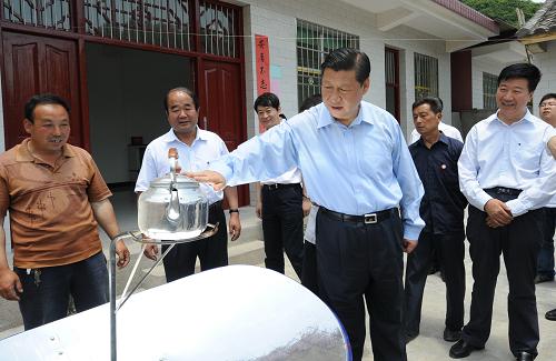6月7日至10日,中共中央政治局常委、中央書記處書記、國家副主席習(xí)近平在甘肅調(diào)研。這是6月8日,習(xí)近平在甘肅隴南市徽縣龍頭新村考察災(zāi)后恢復(fù)重建工作,看望村民。新華社記者 李學(xué)仁 攝