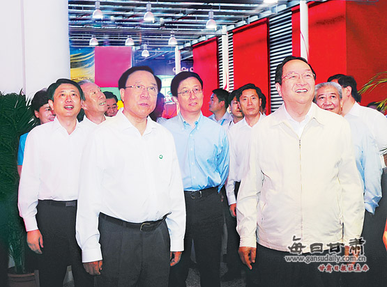 (俞正聲、陸浩、韓正、劉偉平、陳學(xué)亨等參觀甘肅館。)
