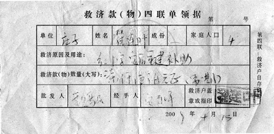 “白條”實(shí)為“《救濟(jì)款(物)四聯(lián)單領(lǐng)據(jù)》”