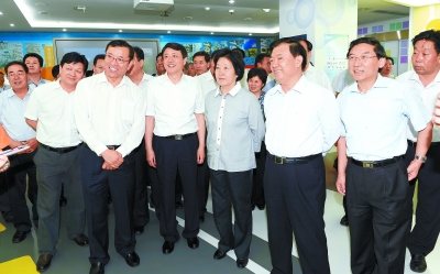 (在福建省委書記、省人大常委會主任孫春蘭陪同下,我省黨政代表團(tuán)在廈門市學(xué)習(xí)考察。圖為代表團(tuán)參觀廈門市中國移動手機(jī)動漫基地。)
