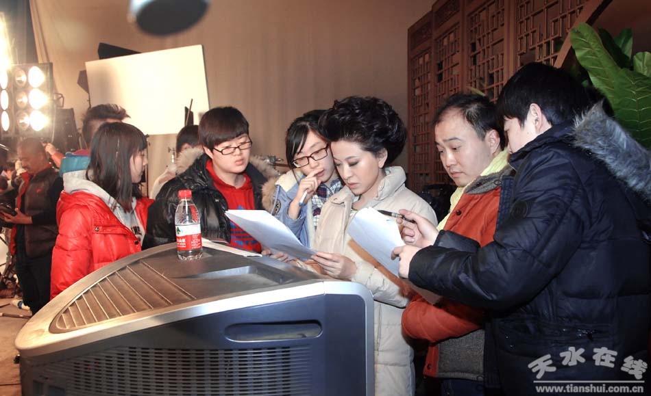 (《中華情 秦關(guān)漢月》錄像現(xiàn)場總導(dǎo)演兼主持人郭霽紅在看稿)