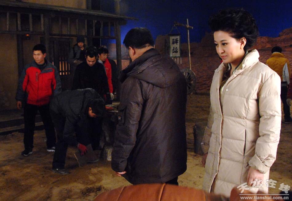 (《中華情 秦關(guān)漢月》錄制現(xiàn)場:總導(dǎo)演兼主持人 郭霽紅指導(dǎo)道具擺放)