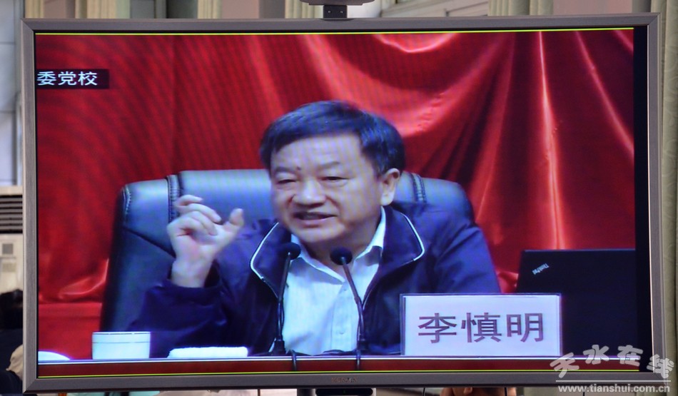 。ㄌ焖腥舜蟪N瘯(huì)副主任黃孝榮、市政協(xié)副主席王振宇及市直部門負(fù)責(zé)同志在天水市委黨校天水第一分會(huì)場(chǎng)聆聽講座。)