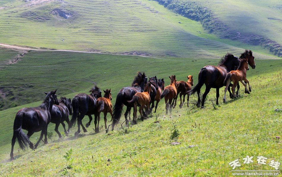 若是7-8月份你到天水,天水正用她滿天的藍、滿眼的綠承接著你。在古坡草原上、在關山牧場里、在草川、在平安草原上,任你引吭高歌,策馬揚鞭!