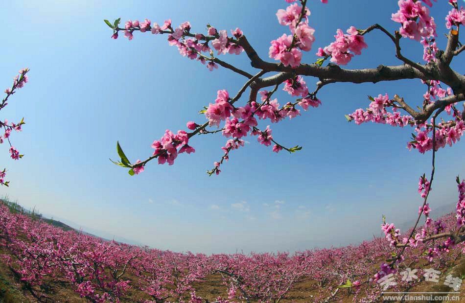 3-4月份,請你到天水看桃花來,天水市五縣兩區(qū)的山川大地上,桃花爭相開放,粉紅一片,相信你燦爛的笑臉如桃花一樣好看。
