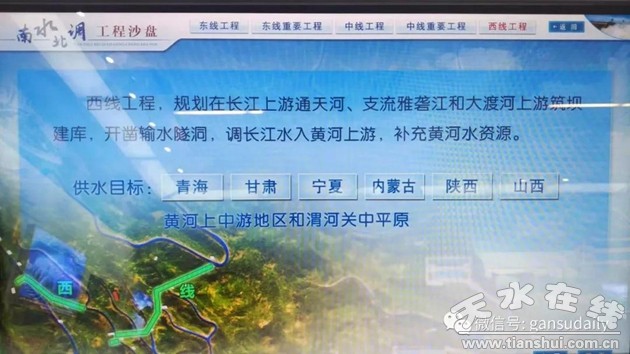 在“水利設(shè)施建設(shè)”中,展示了南水北調(diào)工程沙盤,這是世界上距離最長、受益范圍最廣、受益人口最多和規(guī)模最大的調(diào)水工程,小每妹在沙盤上看到了蘭州市。