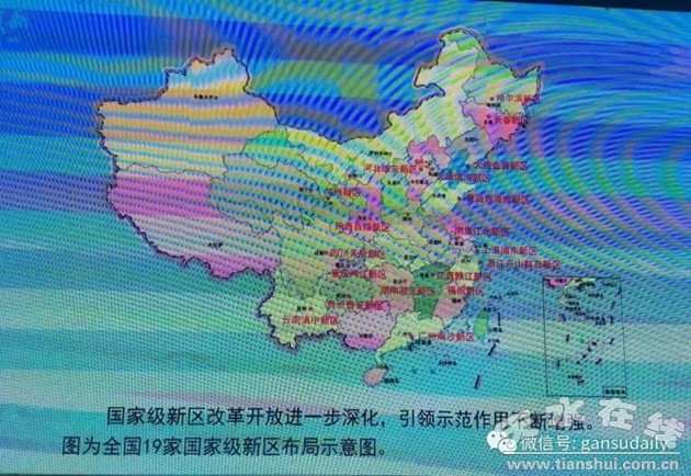 “壯美篇章”第四單元為“區(qū)域協(xié)調(diào)發(fā)展”,在這個單元播放的視頻里,有一張全國19家國家級新區(qū)布局示意圖,其中就有“蘭州新區(qū)”。