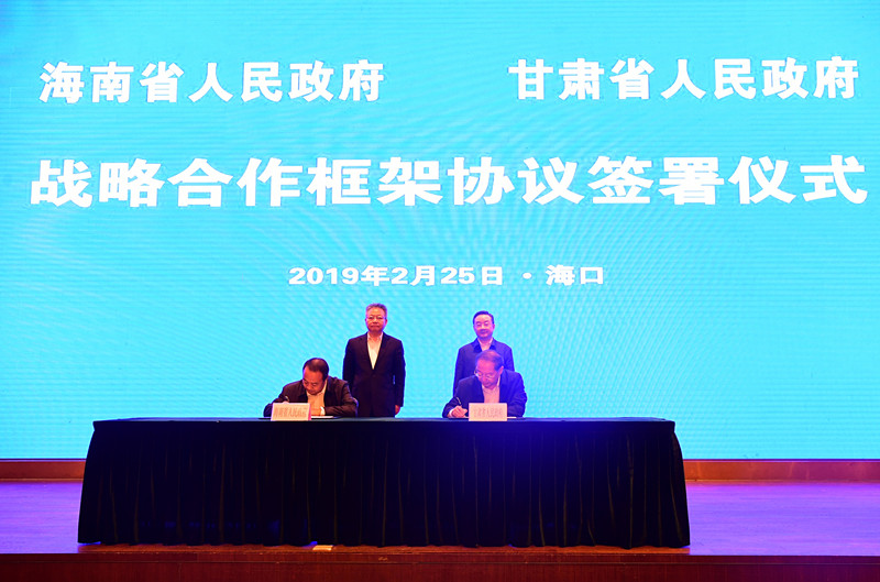在瓊期間,兩省政府舉行座談,決定進(jìn)一步加強(qiáng)兩省戰(zhàn)略合作。唐仁健說,去年習(xí)近平總書記“4·13”重要講話發(fā)表以來,海南迅速扛起建設(shè)自由貿(mào)易試驗(yàn)區(qū)和中國特色自由貿(mào)易港的重大責(zé)任使命,舉全省之力推動(dòng)習(xí)總書記重要講話精神和中央決策部署落實(shí),創(chuàng)造了許多“真經(jīng)法寶”。瓊隴兩省經(jīng)濟(jì)發(fā)展互補(bǔ)性強(qiáng),希望共同抓好“一帶一路”建設(shè)最大機(jī)遇,進(jìn)一步加強(qiáng)特色產(chǎn)業(yè)、經(jīng)貿(mào)交流、文化旅游、科教人力資源等領(lǐng)域的交流合作,共同譜寫共贏發(fā)展的新篇章。海南省委副書記、省長沈曉明說,甘肅與海南都處于歷史發(fā)展重要機(jī)遇期,雙方應(yīng)共享兩地資源優(yōu)勢,推動(dòng)兩省市場主體開展更多更深入的交流協(xié)作,促進(jìn)兩省合作不斷取得新成效,在服務(wù)國家“一帶一路”建設(shè)等方面發(fā)揮更大作用。座談會(huì)后,兩省政府簽署了《戰(zhàn)略合作框架協(xié)議》。
