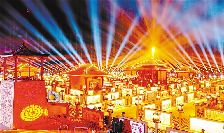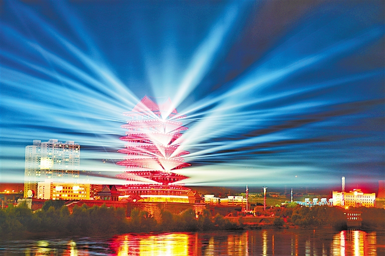 省城蘭州以光為筆、山河作卷,在主要標(biāo)志性建筑上演了美輪美奐的燈光秀。在黃河風(fēng)情線上新落成的黃河樓,燈光、聲效、投影、煙花、火焰等各種元素在蘭州市的這個新地標(biāo)交織,碰撞出絢麗多姿的美麗畫卷;在金城關(guān),被七彩燈光點亮的中山橋,與白塔山交相輝映,形成別具一格的光影盛宴……