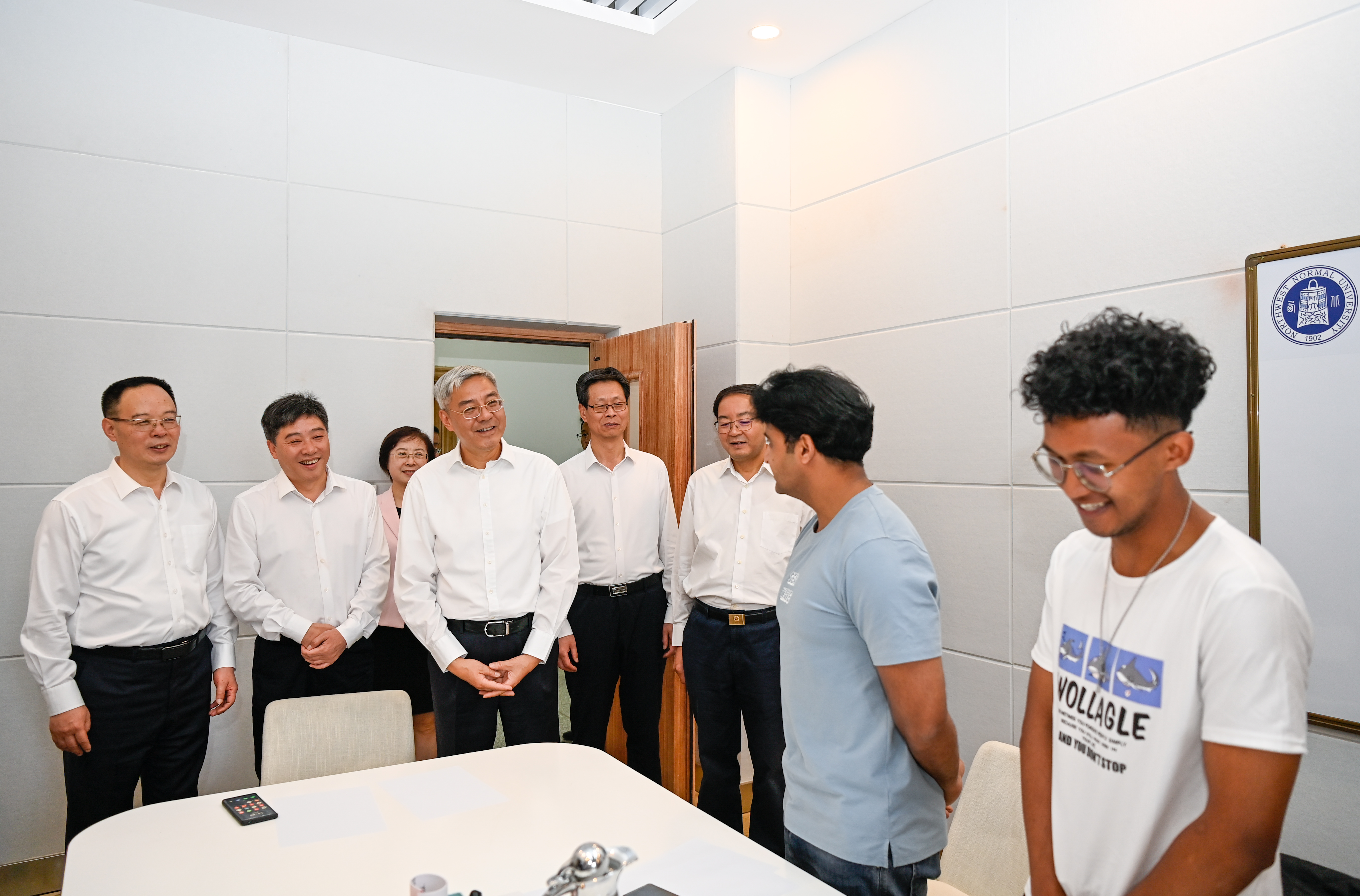 在蘭州理工大學(xué),尹弘詳細(xì)了解了學(xué)校黨的建設(shè)、教學(xué)科研以及服務(wù)地方經(jīng)濟(jì)社會(huì)發(fā)展情況,走進(jìn)學(xué)校省部共建國(guó)家重點(diǎn)實(shí)驗(yàn)室、教育部工程研究中心,考察了科研攻關(guān)和成果轉(zhuǎn)化應(yīng)用等情況,并聽取了學(xué)校有關(guān)工作匯報(bào)。在西北師范大學(xué),尹弘調(diào)研了馬克思主義學(xué)院建設(shè)、思想政治理論課教學(xué)以及黨史學(xué)習(xí)教育等情況,旁聽了思政課教師集體備課會(huì),并同老師們作了交流。