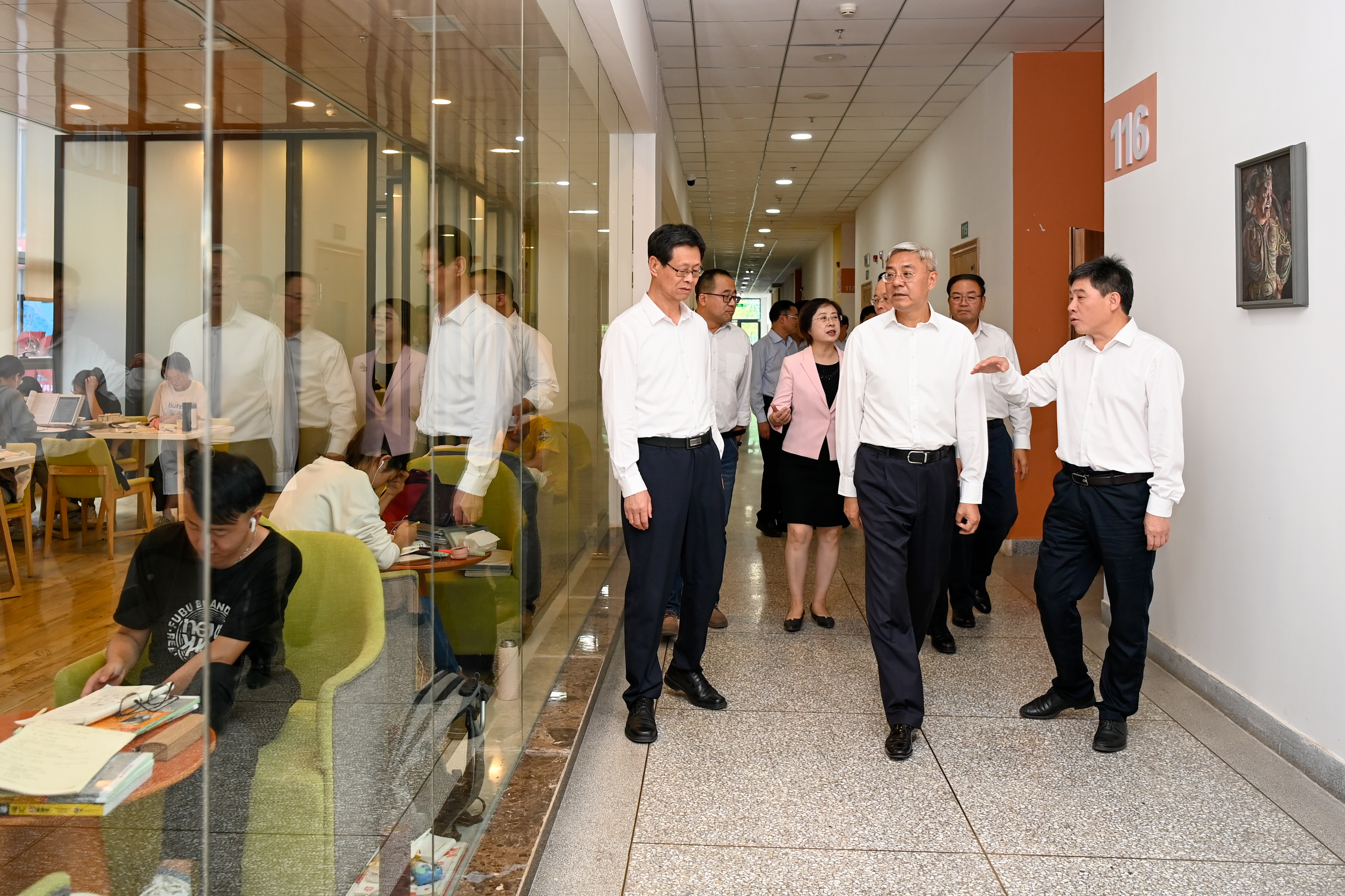 尹弘強(qiáng)調(diào),高校肩負(fù)著培養(yǎng)社會(huì)主義事業(yè)建設(shè)者和接班人的重要使命,要落實(shí)立德樹人根本任務(wù),把思想政治理論課建設(shè)擺上重要議程,堅(jiān)持用習(xí)近平新時(shí)代中國(guó)特色社會(huì)主義思想這一黨的理論創(chuàng)新最新成果、當(dāng)代中國(guó)馬克思主義、21世紀(jì)馬克思主義培根鑄魂,努力培養(yǎng)擔(dān)當(dāng)民族復(fù)興大任的時(shí)代新人。要緊扣國(guó)家戰(zhàn)略需求和地方發(fā)展需要,突出自身優(yōu)勢(shì),主動(dòng)擔(dān)當(dāng)作為,在科研協(xié)同攻關(guān)、科技成果轉(zhuǎn)化、創(chuàng)新人才培養(yǎng)、均衡教育資源配置等方面下足功夫,有效提升服務(wù)經(jīng)濟(jì)社會(huì)發(fā)展的能力。要切實(shí)加強(qiáng)黨對(duì)高校工作的領(lǐng)導(dǎo),抓好基層黨組織建設(shè),使黨的領(lǐng)導(dǎo)覆蓋辦學(xué)治校各領(lǐng)域、貫穿教育教學(xué)各環(huán)節(jié)、融入人才培養(yǎng)各方面,確保黨的教育方針得到全面貫徹。要牢牢守住校園安全底線,認(rèn)真做好常態(tài)化疫情防控工作,營(yíng)造安全穩(wěn)定的校園環(huán)境。
