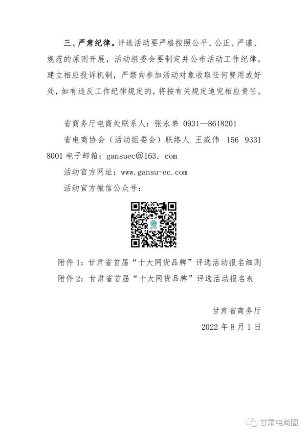 關于積極組織參與甘肅省首屆“十大網(wǎng)貨品牌”評選活