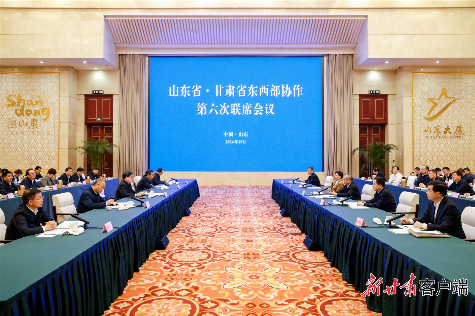 胡昌升代表省委、省政府和全省人民對山東省給予甘肅發(fā)展的無私援助和大力支持表示衷心感謝。他說,近年來,山東深入貫徹落實習近平總書記視察山東重要講話精神,堅決扛牢“走在前、挑大梁”的使命擔當,推動高質量發(fā)展不斷邁出新步伐。山東堅定不移落實黨中央、國務院關于東西部協(xié)作的決策部署,對甘財政援助持續(xù)加大,企業(yè)投資和產(chǎn)業(yè)合作深入推進,群眾就業(yè)增收成效明顯,干部人才交流日益密切。下一步,我們將深入學習貫徹習近平總書記視察甘肅重要講話重要指示精神,主動服務和對接區(qū)域協(xié)調(diào)發(fā)展戰(zhàn)略,同心協(xié)力、同題共答,共同繪就甘魯協(xié)作新篇章。持續(xù)推進新能源產(chǎn)業(yè)合作,加快“隴電入魯”工程項目建設,促進甘肅新能源及新能源裝備制造基地發(fā)展;持續(xù)推進現(xiàn)代農(nóng)業(yè)合作,深化玉米和馬鈴薯制種、鹽堿地開發(fā)利用以及智慧農(nóng)業(yè)、設施農(nóng)業(yè)等領域交流,提升甘肅現(xiàn)代寒旱特色農(nóng)業(yè)發(fā)展水平;持續(xù)推進產(chǎn)業(yè)轉移合作,扎實開展“魯企走進協(xié)作地·甘肅行”活動,落地實施一批標志性、引領性項目;持續(xù)推進文旅發(fā)展合作,加強文旅資源聯(lián)合開發(fā),不斷完善品牌文旅企業(yè)和管理公司跨省經(jīng)營、旅游文創(chuàng)產(chǎn)品開發(fā)推廣等機制;持續(xù)推進生態(tài)治理合作,攜手加強黃河流域生態(tài)保護和高質量發(fā)展,為守護黃河安瀾、建設美麗中國作出新貢獻。