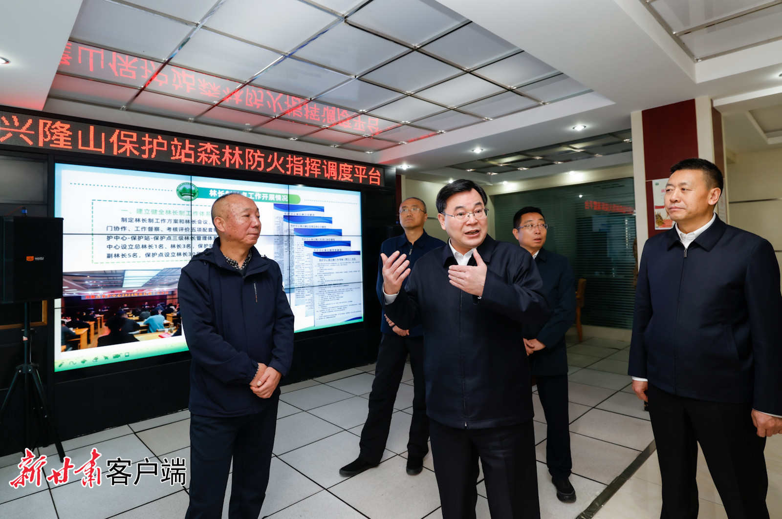 在興隆山國家級自然保護區(qū)管護中心興隆山保護站值班室,胡昌升通過視頻監(jiān)控系統(tǒng)察看護林防火、值班值守等情況,并深入林區(qū)檢查林區(qū)管護和防火工作,對堅守一線的防火隊員表示親切問候。他指出,當前已進入冬季森林防火關(guān)鍵期,容不得絲毫麻痹大意和僥幸心理。全省各級各有關(guān)方面要牢固樹立安全發(fā)展理念,始終保持高度警惕,時刻繃緊森林草原防滅火這根弦,嚴格加強林區(qū)管理,堅持以防為主、防滅結(jié)合,切實做到防未、防危、防違,高度重視人為因素引起火災,立體施策防范和遏制森林火災發(fā)生。