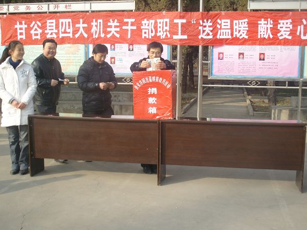 1月4日上午,甘谷縣四大組織機關開展“送溫暖、獻愛心”捐助活動,帶動全縣上下積極行動起來,迅速掀起形式多樣的扶貧幫困、捐資助困活動,以切實解決好城鄉(xiāng)困難群眾過冬和節(jié)日期間生活難題。