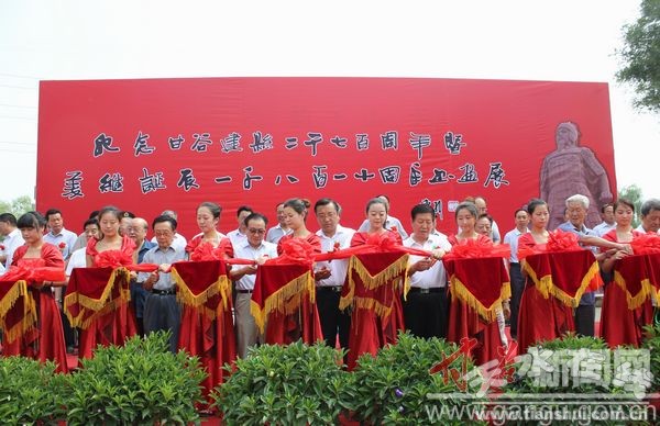 7月29日,紀(jì)念甘谷建縣2700周年和姜維誕辰1810周年書畫展在甘肅畫院隆重舉行。省委常委、省委宣傳部長連輯出席開幕式并宣布展覽開幕。蘭州甘谷同鄉(xiāng)會會長、甘肅省軍區(qū)原副司令員張臣剛少將和中共甘谷縣委書記賈忠慧分別致辭,開幕式由蘭州甘谷同鄉(xiāng)會副會長、甘肅省軍區(qū)政治部原主任石新貴少將主持。