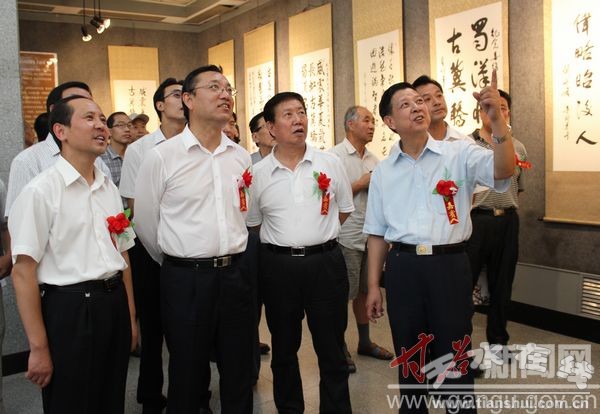 出席開幕式的省上領(lǐng)導(dǎo)有:省人大常委會原副主任程有清,省政協(xié)原副主席鄧成城,省高級人民法院原院長王世文,省委副秘書長兼辦公廳主任陳田貴,省機(jī)關(guān)工委常務(wù)副書記范志斌,省發(fā)改委巡視員丁保南,省人大常委會原副秘書長安晨光,省人大常委會秘書長張緒勝,省文化廳廳長邵明,省新聞出版局局長張余勝,省科技廳廳長李文卿,省地礦局黨委書記馬秉虎,省外事辦公室巡視員焦建民,天水市委原書記劉長凱,省監(jiān)獄管理局原政委張東明,省煙草專賣局原局長張效善,甘肅省書畫院院長馬國俊、黨委書記安邕江,省書協(xié)副主席秦理斌、申曉君等。